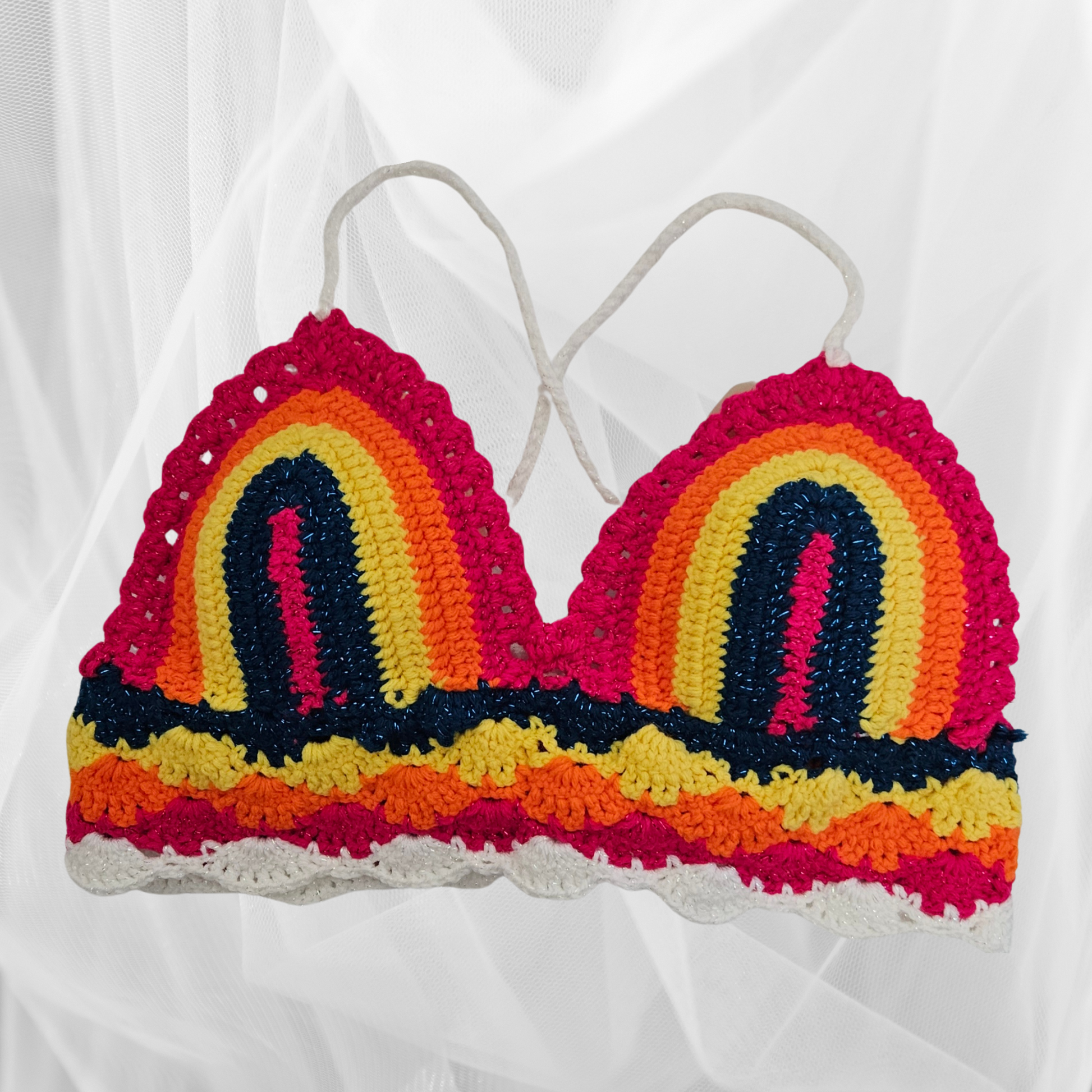 Rita Rosa’s Rainbow Halter Top – A handmade, limited-edition piece inspired by the vibrant colors and energy of Brazil’s Carnaval. Perfect for festivals, beach days, or summer soirées, this cropped top combines boho elegance with festive flair.