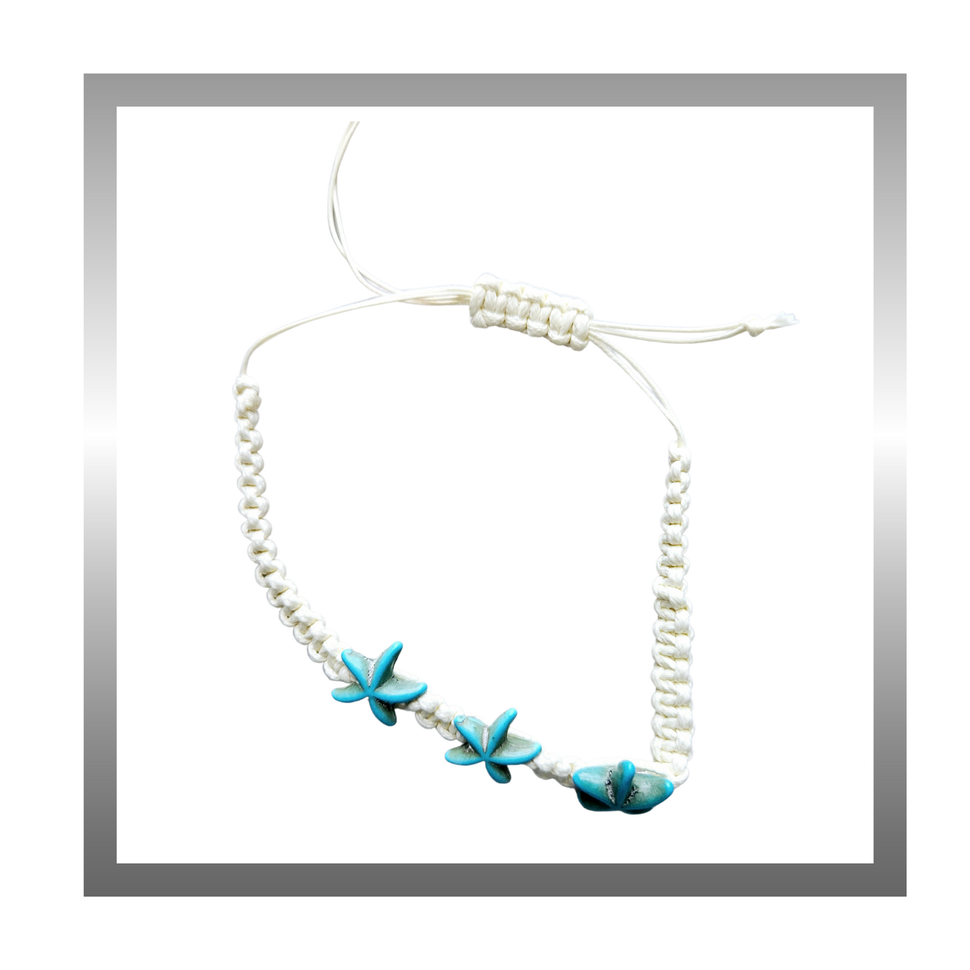 Starfish & Turtle Charms Accent Anklet Braided